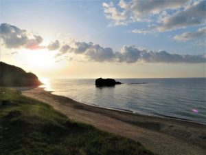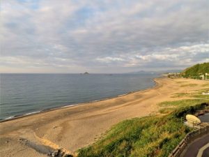 4時10分前に終了。往路と同じ道を辿って7時15分、晩酌タイムに帰着。お世話になりました皆さまサンキューべりマッチでした~~~! ・ 句会や大会のときは散歩する時間がないので、昼食に「讃岐うどん」を食べに出たときに上六付近を少し散歩。4階までエレベーターを使わず階段をテクテク、などでようやく5,367歩。 写真上①ホテルロビーの花。②句会風景。③帰路、午後6時30分ごろの定点観測「白兎海岸」のウエストサイド。④⑤イーストサイド。
