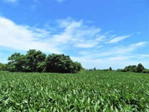 (午後9時30分 追記)本日、梅雨の晴れ間で快晴。最高気温は28℃ほどまで上がったようだが、湿度が少なく、カラリとして爽やか。昼前散歩でも暑くは感じなかった。ただ、久しぶりにウィークポイントである右膝が痛んできたので、夕刻散歩は早目に切り上げて、本日5,900歩。(写真上: 大きく育っているのは、飼料用トウモロコシ)