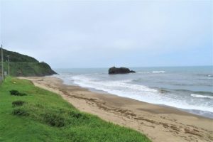 写真下 ①、第2神明道路で事故あり。追突だろう、赤いレッカーの前に後部が大破した軽乗用車。②、定点観測「白兎海岸」イーストサイド。③、ウエストサイド。
