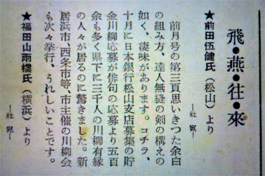 331号を飛ばし読みしていたら前田伍健氏の投稿が載っていた(25頁)(写真上②)。その中で書かれている前号の3頁とは(写真③)、左上隅に麻生路郎の4句を載せただけで、あとは空白。確かに大胆な構図ではある。その4句をアップしたのが(写真④)