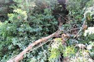 午後4時30分頃、ホームセンターにてあれこれ買い物。済んだあと、総合公園の駐車場へ行って、「さて、夕刻の散歩…」と思ったら、激しい夕立ち。こりゃいかんと帰宅。しばらくしたら小降りになったので、改めて出直して、傘をさして散歩。本日7,722歩。 写真上①、私のパワースポット「東伯第3跨道橋」より西(米子方面を見る) ②、昨日のブログ記事に書いた「通行止め」の原因である倒木。今回は1本だけだった。