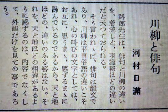 【川柳塔誌電子化】につきましては毎週土曜日に更新されています。21日(土)にも予定通り更新されていましたが、「松江大会」と「塔ウエブ句会」の記事を先にアップしましたので、ご紹介が遅くなりました。21日には、333号(昭和30年2月)817号(平成7年6月)・1045号(平成26年6月)、以上3冊がアップされています。いずれも興味深いですが、333号の15ページには鳥取県の大先輩である河村日満さんが【雑筆春秋】という欄でエッセーを書いておられます(写真下)。最初だけ下にご紹介しますが、続きは下記一覧をクリックしてサイトをご覧ください。