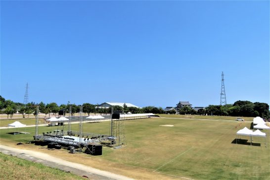 本日、第1土曜日にて「倉吉川柳会」例会日。出かける前に昼前散歩。総合公園を歩いていたら、明日の【白鳳祭】の準備が完了していた(ステージの照明はまだ下がったままだが)。白鳳祭では花火とレーザービームとのコラボが売りで、2~3年前に写真をアップしたことがあるが、去年は大阪出張中で観ることができなかった。今年も明日から大阪出張(5日・八尾市民川柳大会&6日・番傘水府忌句会)なので観ることができない。昼食後12時30分出発。1時ジャスト会場着。