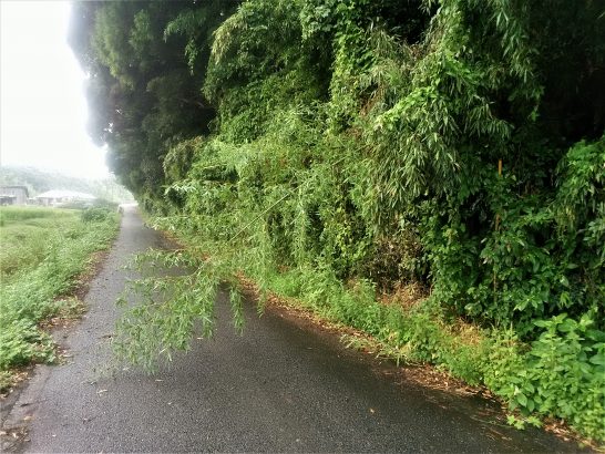 本日、朝10時前ごろから農家の皆さん待望の雨。大きな雨でなく小雨だったが、午後3時まではしょぼしょぼ降っていたので、畑に沁み込んだかもしれない。この程度の雨だったので、昼前散歩は傘を差して出かけようかと思っていたらゴロゴロとカミナリ! 少々の雨は平気だがカミナリは駄目。で、昼前散歩は中止。この雨も午後3時頃には止んだので4時過ぎに夕刻散歩。少し長いコースを頑張ったが、昼前に歩いていないので、本日はようやく6,334歩。 ・ 写真①、大雨や台風のたびに倒木がある散歩道の農道。今日は大きな竹が倒れていた。歩行には支障ないが車は通れないだろう。倒れてきたばかりなのか?道の入口にバリケードがなかった。鋸でもあれば簡単に片づけられるのだが、散歩中なので道具はナシ。 ②、駐車場横の歩道にギンナンがいっぱい落ちていた。去年、面白がって、これをフチブチ踏みつぶして大失敗! 翌日、車に乗ったらクサイクサイ! シューズの底に付いたのがマットに絡みついていた。で、運転席下のマットを丸洗い。そのような学習をしたので、今日は踏まずに写真を撮っただけ。