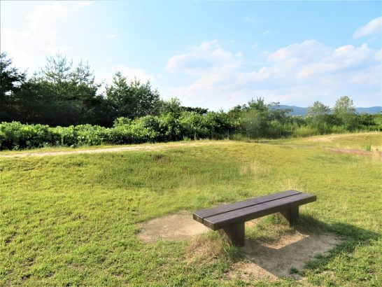 久々の「考えるベンチ」も、回りの芝生も