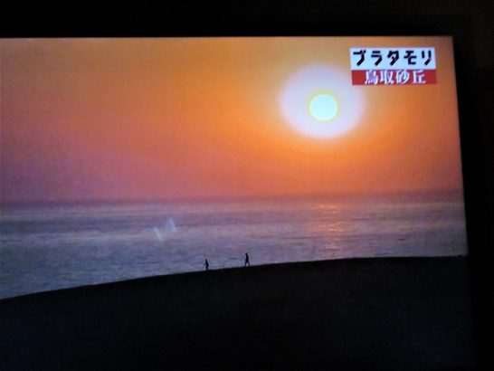 晩酌の後、何気なくTVのスイッチを入れたら、午後7時30分からのNHK総合[ブラタモリ]鳥取砂丘。慌てて画面をカメラでパチパチ(写真上)。              まだ鳥取砂丘へお越しでない皆さ~ん。あの世へ出かける前に是非この世の砂丘にお出で下さ~~~い!   昼前散歩をパスしたので夕刻散歩は少し頑張って8,119歩。