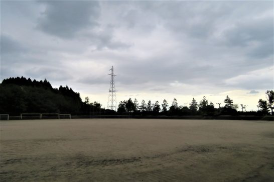 写真上:1 昼前散歩にて、子供公園横の花。2日夕刻散歩にて。総合公園のグランド。ときどき小雨、まるで初冬のようなムードで肌寒かった。本日、8,942歩。