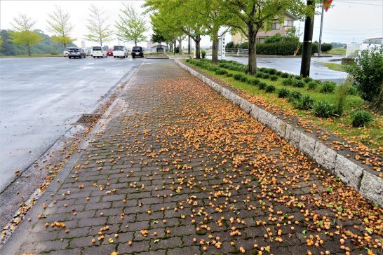 本日、午前中は小雨だったので傘を差して散歩。駐車場の歩道では昨日もアップしたギンナンが雨に濡れていた(写真1)。そしてセイタカアワダチソウが「雨なんか平気!」と踊っていた(写真2)。夕刻には雨が上がったので快適な散歩になった。本日7,626歩。