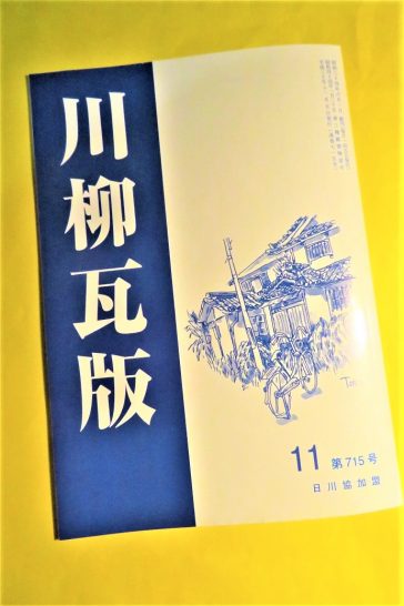 瓦版の10月例会は欠席投句だったので、昨日の川柳塔例会のときに【瓦版会報11月号】(写真上)を頂戴した。さっそくページを繰ってみるといくつか入選していた。