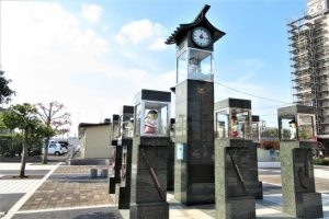写真上、 1 いつもアップしている大社造りを模した出雲市駅。2 これもアップしたことがある駅前のカラクリ時計。