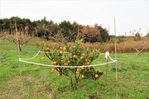 写真: 1、2 快晴だった本日昼前の散歩にて。裸木になる直前の木々。3 夕刻の散歩で通りがかった原っぱに蜜柑の木。いっぱい実った周囲に白いロープがある。さて、これは、カラス除け?それとも人間に対して「野生ではありません。管理していますので盗らないで…」という印なのだろうか? 両方かもしれない。本日7,126歩。
