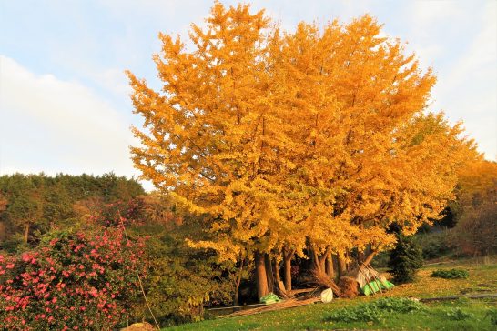 大きな公孫樹、夕陽を浴びてオレンジ色に輝いていました。今年の紅葉もこれが最後でしょうね。これからは「里の冬」で、良い写真が撮れましたらアップさせていただきます。