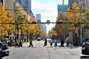 午後1時ジャスト中之島公会堂着(写真上)。その上は御堂筋の公孫樹並木。12月というのにワイシャツ姿が目立つ。私も15分余り早足で歩いたので頭から汗。気温は25℃ほどあったのではないか?(車の外気温インジケーターは26℃だった)