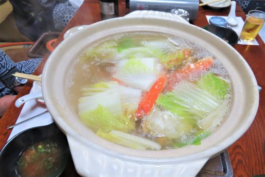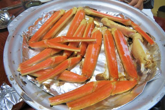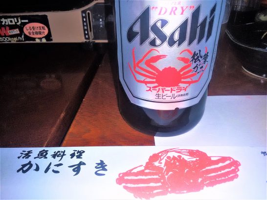 8日午後5時30分より、賀露のM旅館にて、勤務時代の同僚との忘年会。参加者9名。地元は私だけ。いちばん遠方は佐世保から1名。他の7名は京阪神地方から。ビールで乾杯後は私が持ち込んだ「獺祭」そして、海外へしばしば出かけている友人からいつものようにウィスキー(ロイヤルサルート)。また、私の句集(ベストコレクション)の御礼と高級ウイスキーを持って来てくれたのでそれも開けて3種混合ガンガン。料理は蟹三昧。写真下、焼き蟹&鍋。そして、アサヒスーパードライの「松葉ガニ・バージョン」。 ・ 昨日は昼前散歩だけで4,700歩ほど。今日は夕刻散歩だけで5,825歩。
