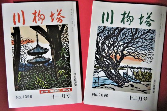 1表紙。2蒜山高原の朝。3小豆島夏色。4首里城へ。5柳川水映え。6晩秋田沢湖町。7津軽斜陽館。8三春雪の日。9川柳塔誌の表紙状況。11月号は当麻寺・東塔。12月号は日南市飫肥(おび)。ちなみに川柳塔誌は来年1月号で1100号になります。 本書「きり絵散歩Ⅱ」ご希望の方は下記の前田尋さんまでお申し込み下さい。
