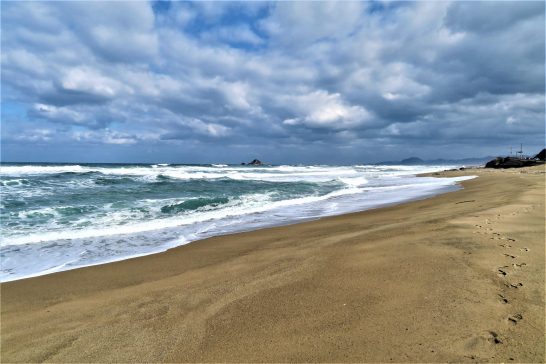 本日、第4日曜日にて【うぶみ川柳会】例会日。拙宅から会場までは50分弱だが、朝食が遅かったのと、白兎海岸で定点観測したかったので11時30分に出発。白兎海岸の道の駅着は12時10分。定点観測の写真を撮ってから昼食(写真上:白兎海岸のウエストサイドとイーストサイド。同じ時刻に撮ったのだが、東の空には雲がいっぱい残っていた)。のち会場へ向かって1時ジャスト着。