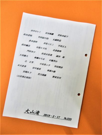 本日、終日「大山滝句座」会報作製に集中。パソコンにインプット&プリントアウトのち校正まで終了。コピーは明日の午前中に完了して、午後には発送できる予定(写真)。早いときは句会後4日で発送したこともあるが今回は6日。手作りの粗末な冊子(表紙を含めて僅か8頁)だが【早いがごっつぉ】の精神で荒っぽくやっている。