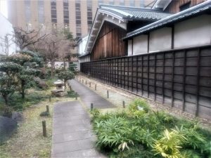 写真上中之島中央公会堂 2緒方洪庵の像と住居(像の後ろ) 3ビジネス街の一角にホッとする庭(右は洪庵邸)。