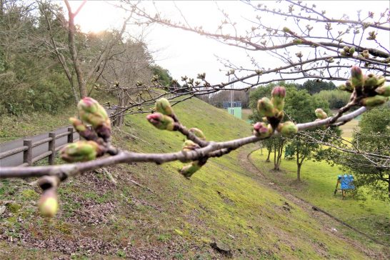遊歩道の桜も暖かい日が続くと一気に開花するでしょうね
