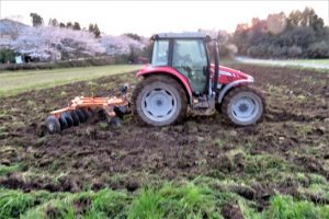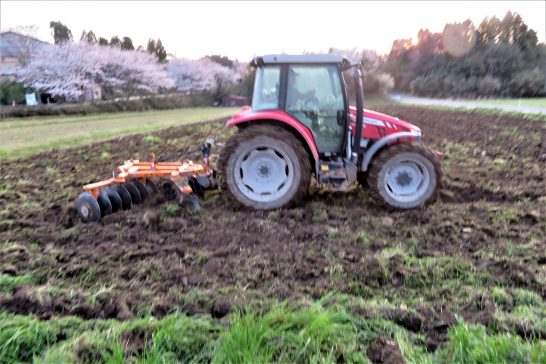 夕刻散歩では耕運機が元気の良い音を出して耕していた。この畑はいつも「飼料用トウモロコシ」が植えられている。今年もその準備だろう。(写真2)