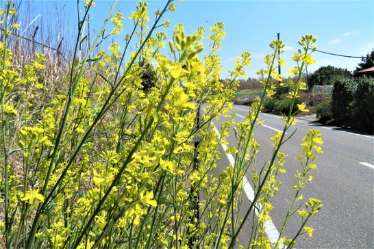本日昼前、公園外周の農道を歩いていたら、今シーズン初めて見る蝶々(紋白蝶だと思う)がひらひら、私を追い越して行った。すぐ先に菜の花があったので、「止まったら写してやろう」とカメラを構えたが、花には見向きもせずに飛んで行った。仕方がないので花だけパチリ。(写真1)