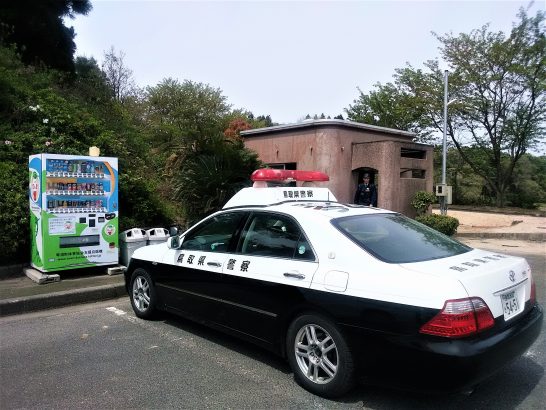 本日、昼前散歩のために総合公園の駐車場へ向かっていたら、バックミラーにパトカー。「どこへ向かう?」とチラチラ見ていたら、そのままついてきて、私が停めた二つ向こうに停車。「また職務質問か?」と思って運転席に座ったまま様子を見ていたら、助手席から降りた警察官の1人がトイレの方に向かって行った(写真の建物)。警察官も人の子「シッコ~猶予」と、酔っぱらいの常套語を思い出しながらドアを開けて歩きはじめる。 ・そのまま歩いて行けば問題なかったのだが…。停まっているパトカーを「こんなに近くで撮れるのは珍しい。ブログネタに…」と、わざわざ後戻りして、スマホでパチリとやった(写真上)のを、トイレから出てきた警察官にチラッと見られた。(マズかったか?)と思いながら、歩き出したら、案の定、駐車場を出て50メートルほど行ったところで追尾してきたパトカーに呼び止められた。降りてきたのは若い警察官2人。「いま写真撮っておられたようですが、何かご不審なことでもありましたか?」と切り出した。「いや、ブログネタにと思って…」。その後は形通りに「住所、氏名、生年月日」を訊かれたので、正直に答えて「トピアの前のコギレヤです」と言ったら、1人が、「ああ、どこかでお目にかかったと思ったら…」ということで1件落着。で、「半年ほど前にも、ここの駐車場で休憩していたら質問された」と言ってやったら、二人とも苦笑していた。