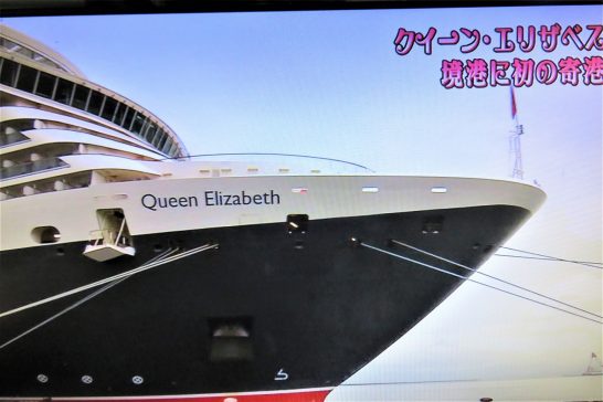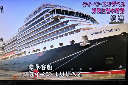 本日の夕刻、NHKのローカルニュースを観ていたら「クィーン・エリザベス号、境港に寄港」と流れたので慌ててパチリ。(写真2と3)やっぱりデカイなあ~~!!