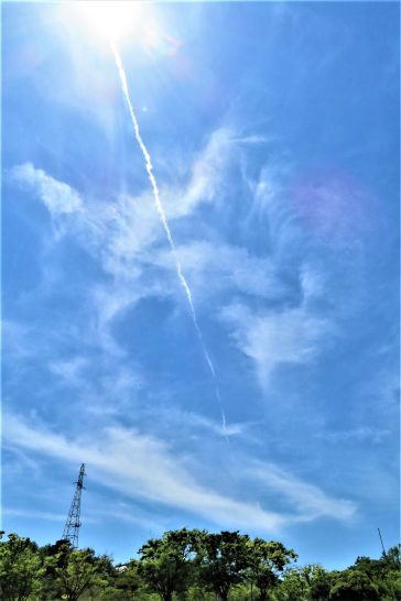 6日のブログにも書いているが、メルパルクの駐車場に早く着いたので、外出してコピーしたりして時間つぶしをしていたときのこと。轟音がするので仰ぎ見ると、伊丹空港に向かって着陸態勢に入った飛行機。パチリと撮ったのが写真1。 写真2本日の昼前散歩でふと仰ぎ見ると、飛行機雲がぼやけかかっていたのでパチリ。本日8404歩。