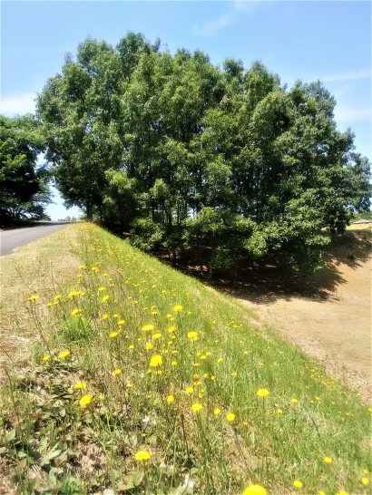 一枚目の写真、 土手と 木の角度が 微妙な感じで 何回みても 頭を傾かせて 見てしまいます。(笑)
