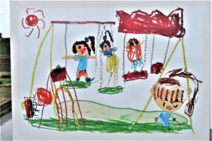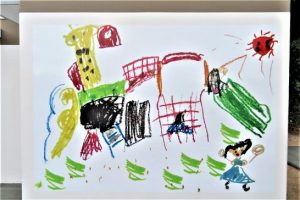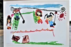 写真上、こども公園の横に建設されていた「トイレ」が完成。昨日、通りかかったら壁に可愛い絵が描いてあって、「ブログネタに写真を…」と思ったが、子どもや若いお母さんがたくさんおられたので「不審者!?」と誤解されてもいけないのでスルー。 今日は誰もいなかったのでパチリ。下は、そのクローズアップで「男子トイレ側の絵」、「女子トイレ側の絵」そして「南側の壁の絵」。それぞれの絵は、すぐ近くの【やばせこども園】の子どもたちが描いたのを拡大したもの。よく見たらブランコとか滑り台とか、すぐ横の「こども広場」のスケッチなのだろう。本日、昼前と夕刻、雨はパラパラだったので傘を持って散歩したが、少し差しただけだった。7320歩。