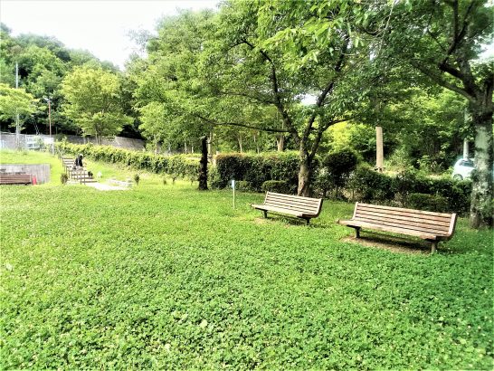 はい、「仲良しベンチ」、ふかふかのクローバーの草むらに囲まれてのんびり寛いでいました。端の方で、2歳ぐらいの女の子と若いお母さんが花を摘んでいました。ブレスレットでも作るのでしょうか。