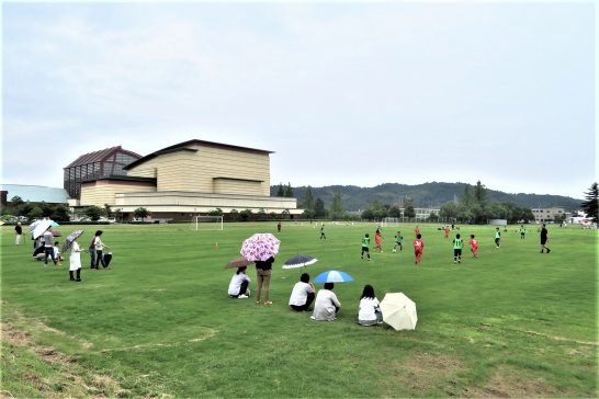 打吹川柳会の会場(上灘公民館)は、子どもたちがサッカーしている「美術館建設予定地」の道路を挟んですぐ東側にあります。