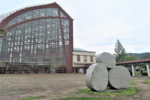 はい、周囲はガラスでスケスケ。メインの柱は木材って、凄いでしょう。片田舎で「よく思い切ったものだ」と見るたびに思います。