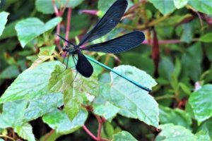 写真1、適当な被写体がなかったので、取り敢えず拙宅キッチンに飾ってあった花。ご近所の皆さんから菜園の野菜をたっぷり頂戴しているが、この花も頂いたもの。        2、夕刻散歩で駐車場まで戻ってきたら、羽根が黒くて胴体が細いトンボが私の周囲をスイスイ。ようやく葉っぱに止まりかけたところをパチリ。先ほどネット図鑑で調べてみたら「ハグロトンボ」? 本日、昼前散歩も夕刻散歩も蒸し暑くてじっとり汗。7,393歩。