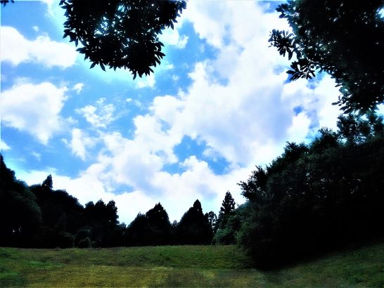 本日、ようやく中国地方が【梅雨明け】と発表あり。同時に鳥取県地方35℃で全国で3番に目に暑かったとのこと。確かに、昼前散歩も夕刻の散歩も暑かった。         写真1、昼前散歩にて、総合公園の広場でカッと照り付けてきて、木陰から出るのをためらうぐらいだった。2、公園外周の道路でも陽射しがきつくて「夏が来た~~~!」を実感。本日7,544歩。