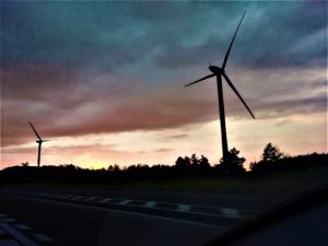今度は 夕焼けですよね。 きれいです。そちらは 風車(?)が 多いですね。
