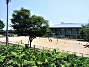テニスコート手前の木随分上が繁っていますね。