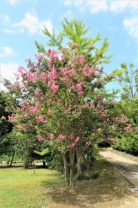 昼前散歩の総合公園にて。いつもの遊歩道を歩いていたら「わたしも写して!」という声がする方を見たら鮮やかな百日紅(写真1)。8日にアップしたものよりたくさんの花をつけている。で、パチリと写して歩き出したら、また「わたしも~!」というので見ると同じように鮮やかな百日紅(写真2)。よくよく見ると、この公園には百日紅がいっぱい。植えられた場所によって生育が大きく違っているようだ。本日7,420歩。