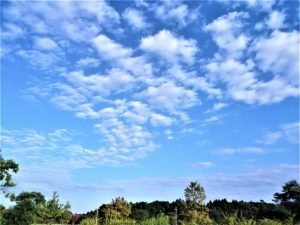 写真、昼前散歩に出たら、陽射しがきつくて、真夏と同じように首筋がチリチリ。総合公園の野球場で元気な声を出していたのは中学校の野球部だろう。水平線は日本海。  2、倉吉からの帰途。「北栄~真庭道」から北を見る。3、午後4時30分頃に出かけた夕刻散歩にて。少し大きめの鱗雲が連なって押し寄せているようだった。本日7,430歩。
