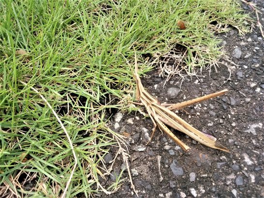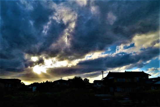 写真1、本日の昼前散歩。公園の遊歩道でバッタが風に吹かれて行く末を思案していた。 2、夕刻散歩から駐車場に戻ったら、サーチライトが「悪いヤツはイネガ~~!」と探していた。本日8,175歩。
