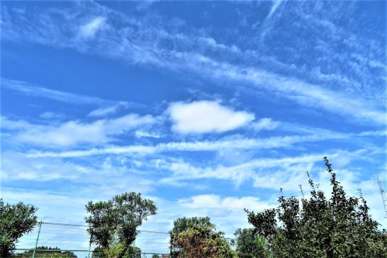 写真1、昼前散歩にて。崩れた飛行機雲が綺麗だった。2、夕刻散歩(午後6時10分)にて。凄い夕焼け雲。本日7,886歩。