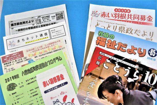 我が保地区2班は24軒、そして、順番制で今年は私が班長、ということは何度かこのブログでアップしている通り。班長の仕事の1つは、月末に「配りもの」を各戸に配布すること。今月の「配りもの」は写真上の通り。右下から上へ「琴浦町町報」「社会福祉協議会だより」「鳥取県政だより」「赤い羽根共同募金の案内」。左下から上へ「八橋地区運動会ご案内」「観光協会だより」「まちネット通信」「徳万駐在所だより」etc。みんなまとめて輪ゴムで止めて、郵便受けに投函させていただく。
