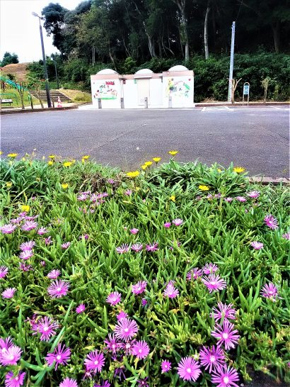 本日、第1水曜日にて医光寺坐禅会例会日。今月より「冬時間」で5時30分開始。本日の参禅者8名(フルメンバー11名)。結跏趺坐40分弱。終了後本堂にて般若心経唱和のちミニ法話頂戴。のち別室にて、お粥・漬け物・お茶・茶菓子などを頂戴。茶菓子の中に、メンバーのYさんのウズベキスタン土産があったので、珍しい土産話などを聞いて談笑。坐禅会にはYさんをはじめ「仏跡参拝旅行」のメンバーも多いので、失敗談などが飛び出して大笑い。7時過ぎに辞去。帰宅後、新聞を持って自室のベッドに戻って9時過ぎまでウトウト。本日、まだ蒸し暑さが残っていて、歩くとじんわり汗だったが7,352歩。 ・写真1、こども公園横の植え込みの花(マツバギク?)(背景の可愛い建物はトイレ)2、公園外周の農道にて、ふと見上げるとムカゴ。いよいよ実りの秋の到来である。