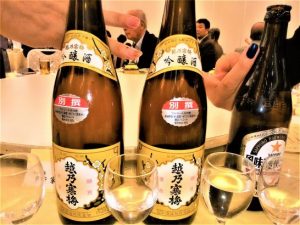 5日(土)、朝7時53分浦安発~倉吉にて特急「スーパーはくと」に乗り換え。大阪着は11時20分。時間がたっぷりあるので、駅周辺をウォーキング。大阪駅の大屋根(写真1)。歩道橋からパチリ(2)。のち阪急宝塚線にて蛍池~モノレールにて大阪空港。新潟行き(JAL2247便・写真3)は14:20分発~新潟着15:20分。              リムジンバスにて新潟駅へ。駅直近の「新潟第1ホテル」へチェックイン。ひとやすみして、グランドホテルでの交流会へ。ビールで乾杯後は新潟の銘酒(4)ガンガン。注がれたら頂戴して休む暇なし。舞台では民謡と踊り(5)。2時間ほどワイワイ騒いでお開きの後は駅近くの繁華街(6)の蕎麦屋にて2次会。15人ほど?。ここでも新潟の銘酒。1時間半ほど談笑した後「カラオケ!」という声も頂いたが、出発前から喉風邪?のようで、ときどき咳が出るので大事を取ってバイバイ。10時頃ホテル帰着、バタンキュー。