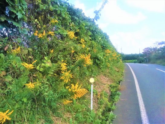 本日、月に1度の「コンテナハウス」での飲み会。午後6時から、というので5時45分出発、55分着。本日の出席8名(フルメンバー9名)。皆さんはビールで乾杯だったが私は「焼酎湯割り」で、のちほど清酒「鷹勇」の「なかだれ」が回ってきたので、もっぱらそれをグイグイやって、8時過ぎに代行を呼んで帰宅。駐車場の前でおしんちゃんの看板が「寄ってらっしゃいよ」と微笑んでいたので、立ち寄る。火曜日(本日は、皇位継承の祝日?)のおしん、先客5名ほど。その後、入れ替わって5人程で交代でカラオケ。 本日、昼前散歩のみ5,693歩。写真上:農道のセイタカアワダチソウ、元気良し。