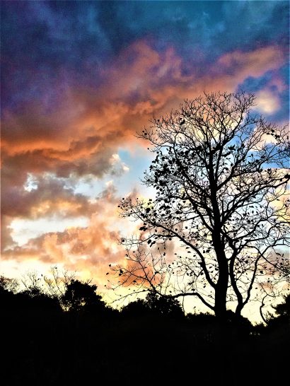 サンキューべりマッチです! デジカメが重たいので、近頃はポケットに突っ込んでいるスマホで撮っています。夕焼けはすぐに模様が変わるので、この写真もアレコレ角度を変えたりして、5分ほど撮りまくった内の1枚です。