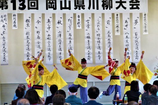 〇の句が「天」だったので、表彰の対象となり【岡山県議会議長賞】をゲット。出来過ぎ~! 終了は3時30分ごろ。往路と同じ道を走って、帰宅は午後5時20分。 ・ ・写真1、選を終えて会場に入ったら、別嬪さんがアトラクションの踊りをやっていた。2、帰路、山陰道の北栄町あたり。飛行機雲がくずれて面白い模様だった。3、午後5時20分。帰宅した駐車場からの夕映え。本日、散歩する時間なく2,645歩。