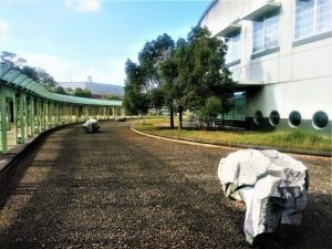 11時40分頃に道の駅「河原」着、昼食と時間調整で小休止。12時過ぎに出発して、「打吹川柳会」会場の、「上灘公民館」着は1時ジャスト。投句を済ませたあと、公民館の西側にある「未来中心」までブラブラ散歩。街路樹が色付いて綺麗だった(3)。この「未来中心」には図書館など多くの施設があって、それぞれの間には中庭(4)や広場(5)があちこちに設けられている。会館の中などは賑わっているが、広場や中庭は訪れる人も少ないのでゆったり寛げる。散歩から帰ったらタイミング良く披講開始だった。