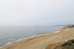 帰路に白兎海岸へ寄って定点観測。6、白兎海岸ウエストサイド。7、イーストサイド。 帰着は4時30分。まだ明るかったので夕刻散歩へ。8、野球場の上の雲が綺麗だった(午前中は雲が多かったが、夕刻には快晴になっていた)。 ・本日、昼前散歩+湖山池周辺+夕刻散歩+午後7時から役員会にて公民館へ(議案は神宮大麻頒布について)等々、あちこち歩いたので久しぶりに1万歩を超えて11,597歩。