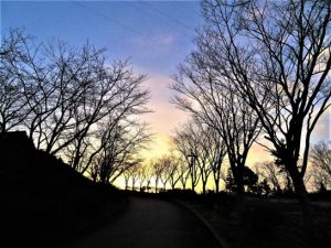 写真上は、総合公園の美しい木陰。「木陰」は夏の季語だと思うが、葉が少なくなった枝や幹の影は夏場に見ることは出来ない。しかも好天でないと現れない。3番目は夕映えを背景にしたシルエット。本日、昼前と夕刻と頑張って歩いたので9152歩。